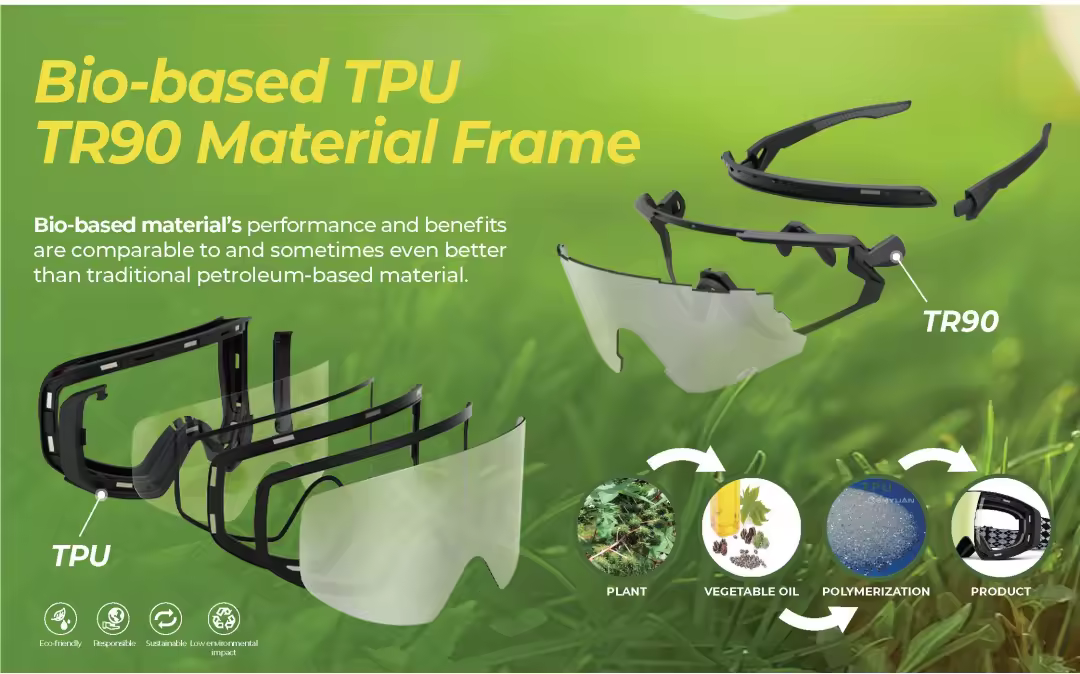 This unique mix of sustainability, comfort, performance, and aesthetics makes bio-based TPU TR90 an ideal material for premium, eco-friendly sunglasses.